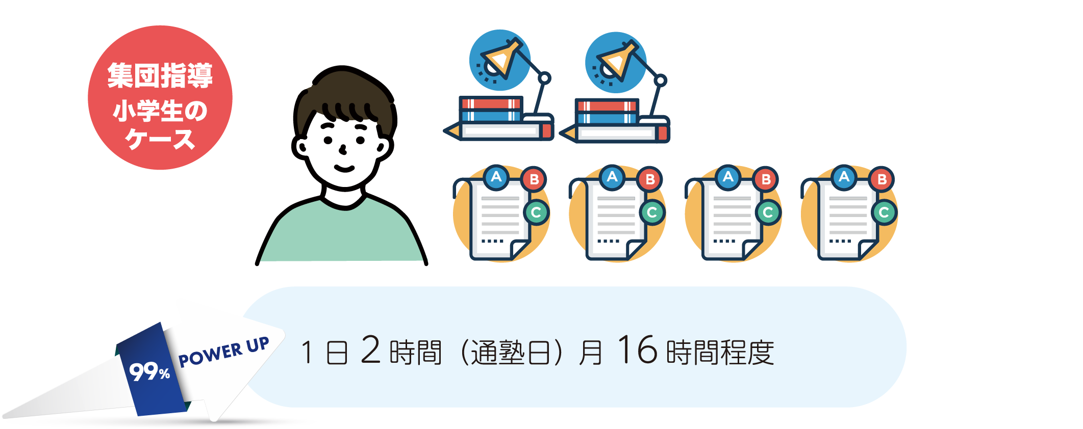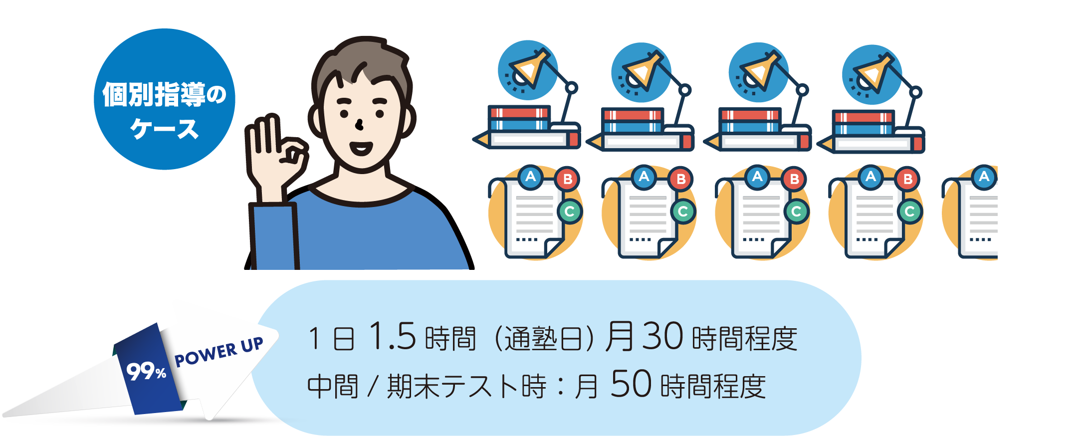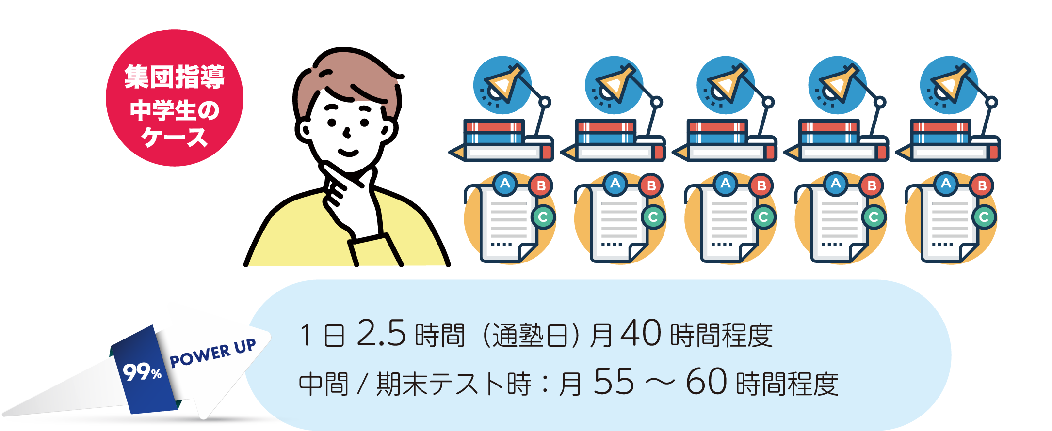 集団指導では、どこにも負けない授業時間数を設け志望校合格へ導きます。