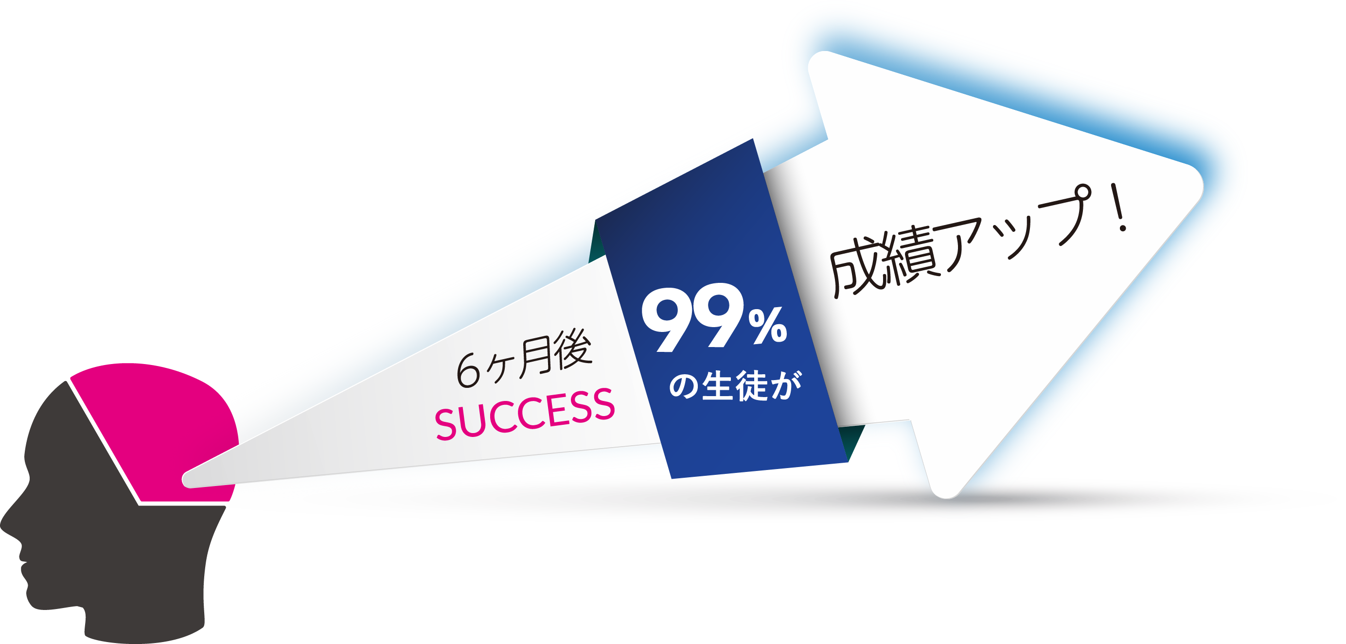 当塾に入塾した生徒の成績推移を追跡したところ、入塾から2ヶ月後には49%の生徒の成績が向上しました。4ヶ月後にはその割合が71%に上昇し、6ヶ月が経過した時点では99%の生徒が成績を伸ばしています。
