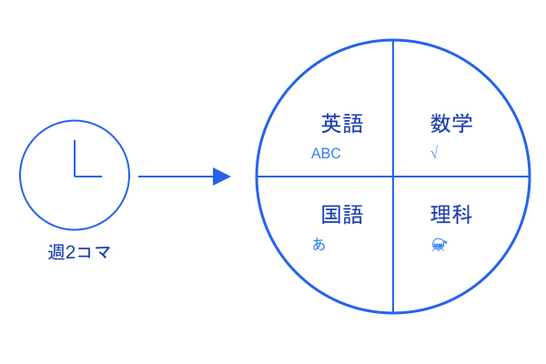 週2コマの授業時間を効率的に活用し、英語・数学・国語・理科の4教科を指導します。各教科の基礎から応用まで、生徒の理解度に合わせて段階的に学習を進めていきます。